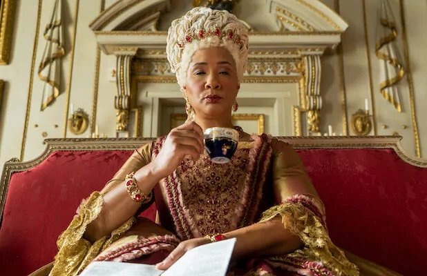 Em dado momento, a importância desse casamento é exposta num diálogo entre Lady Danbury (Adjoa Andoh) e Simon Basset (Regé-Jean Page): “Entendo que acredite que sentimentos como amor e devoção, afeto e apego, não passam de bobagens e frivolidades. Mas já parou pra pensar que esses sentimentos são precisamente o que permitiu que um novo dia começasse a raiar nesta sociedade? Veja nossa rainha. Veja nosso rei. Veja o casamento deles. Veja como tudo mudou pra nós, o quanto nos deu abertura. Éramos sociedades distintas, divididas pela cor, até um rei se apaixonar por uma de nós.”