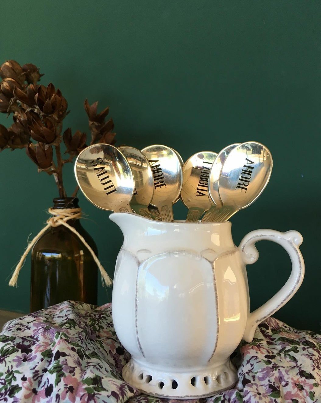 O destaque vai para a coleção INTENTO com as colheres de design alemão do século XVII garimpadas em leilões de arte (agora morri de vez!). Elas vêm gravadas com as palavras Salutti, Amore, Famiglia. Ah para, né?! E as donas explicam que “em italiano, porque nada mais intenso, unido e amoroso que a família italiana, e ‘intento’ no sentido de que nada ‘vai entrar no seu caminho para que essas coisas aconteçam”. A minha paixão começou aí! Quero todas! E quem não se derreteria com uma coisica dessas? Puro amor!