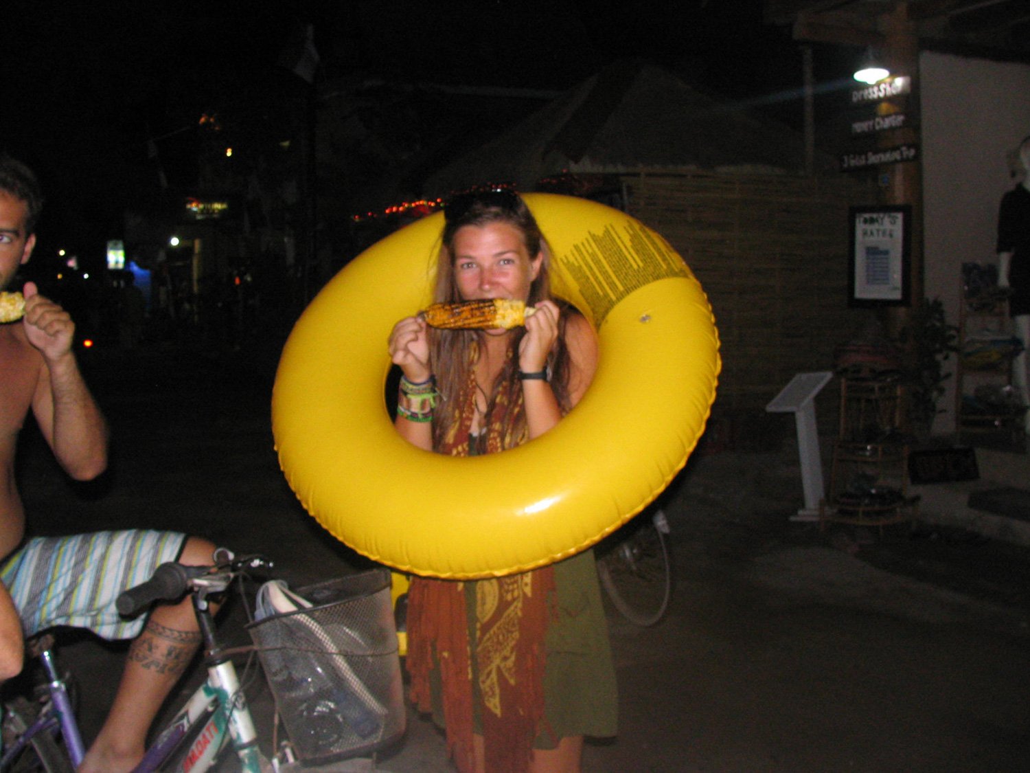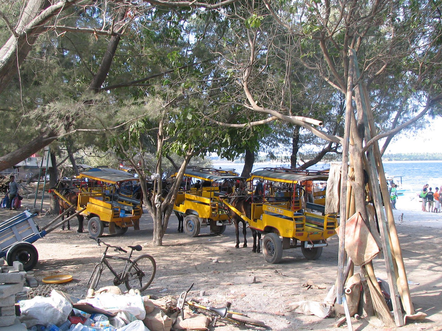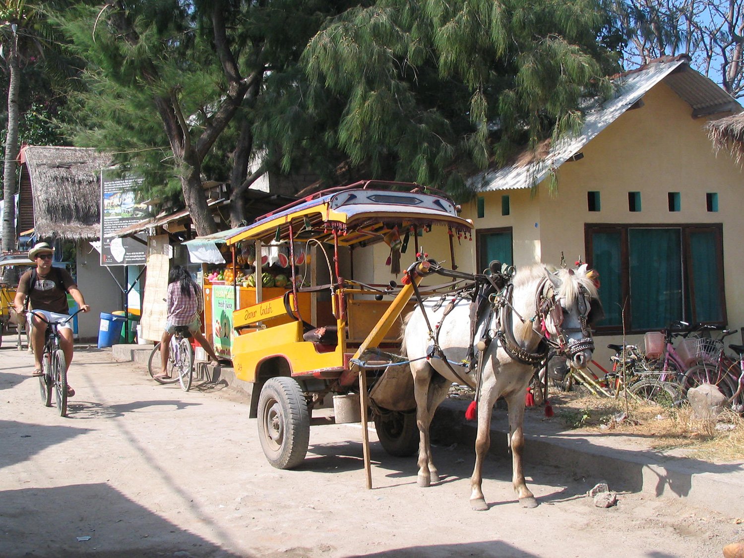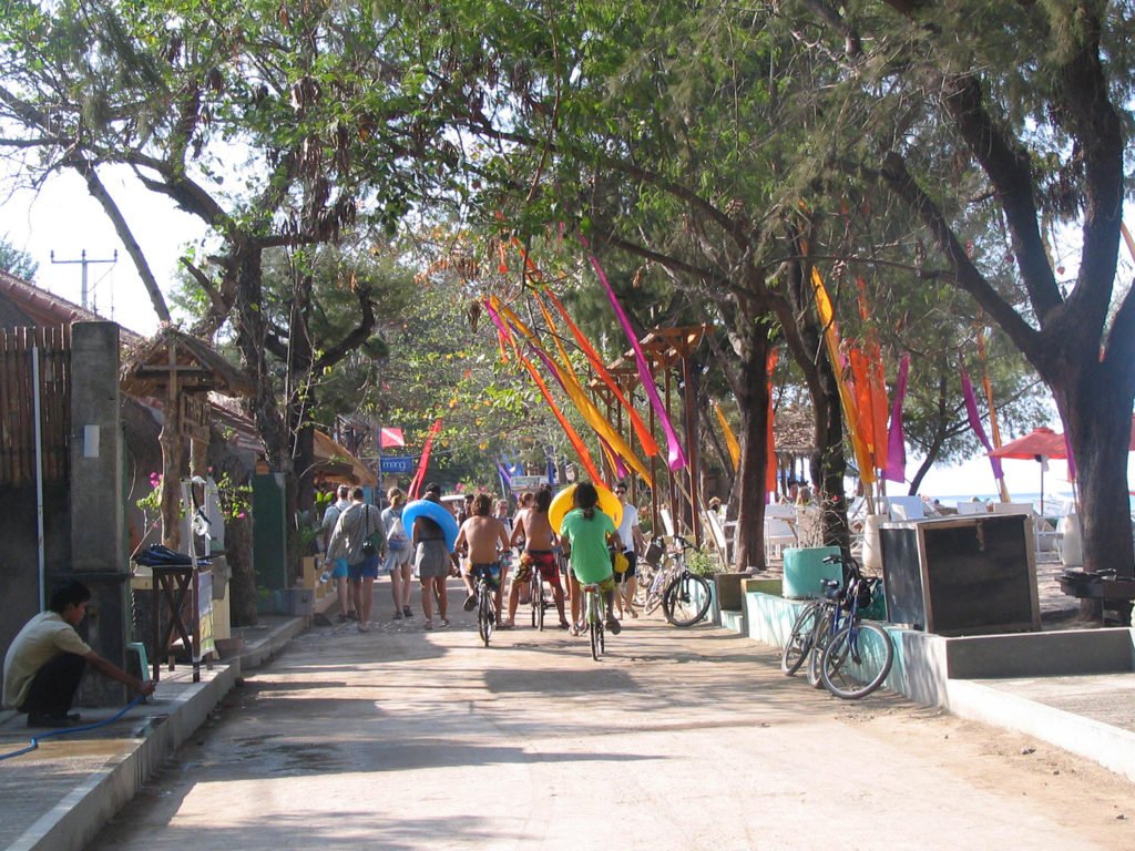 “Mãe, tu podes conhecer toda Gili Trawangan em um passeio de duas horas, de bicicleta”” me informou ele que sempre tinha informações preciosas de pontos turísticos e os menos prováveis de serem turísticos, mas que encantavam. Preferi caminhar com ele e a turma. Nem preciso dizer que, assim como em Bali, eu continuava acompanhada de uma meninada super bacana: brasileiros e duas meninas canadenses que se enturmaram desde a pousada em Ayu Guna Inn. Noites de passeio na única e movimentada “avenida” de chão batido, comida local e, à exceção de quem narra essa história, todos caiam nas festas, embalados pela contagiante alegria e pique que têm os jovens, especialmente quando em lugares tão cheios de luz e paz.