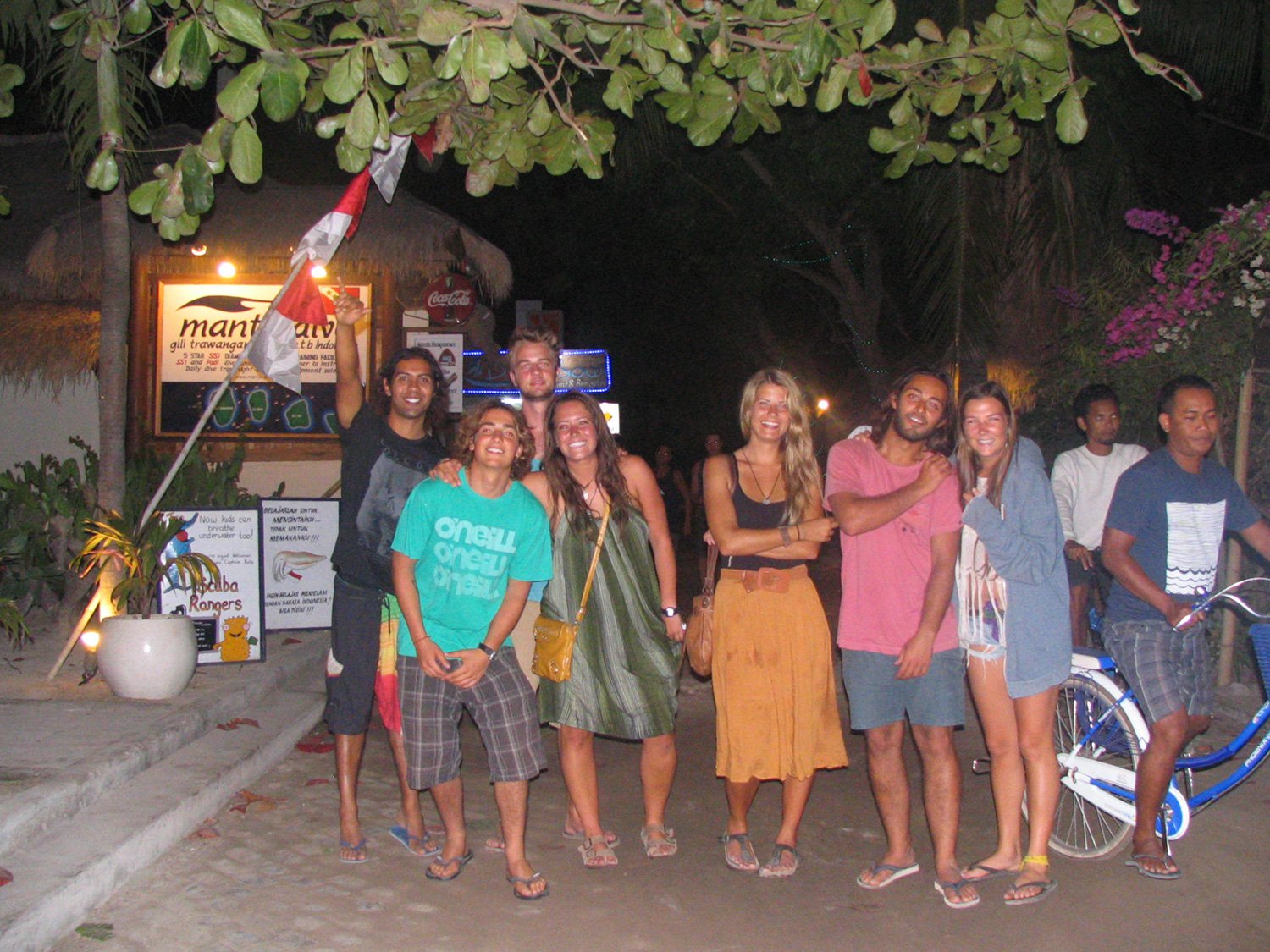 Naquelas férias, além de Bali, Gili Trawangan era o segundo lugar onde passamos dias banhados de sol, com gente de bom papo e novidades em cada esquina. Numa espécie de pracinha do local, ouvimos alguém lembrando nas caixas de som espalhadas nas redondezas a hora do Salat, conjunto de orações muçulmanas feitas diariamente em diferentes horários. Pára tudo. Hora de cumprir com o Salat, um dos pilares do Islamismo. Claro, os turistas e locais não muçulmanos seguiam especulando as tendas, pedalando e tomando suas cervejinhas. Havia um burburinho de risos e conversas em diferentes idiomas, pois ali tudo era, ao mesmo tempo, um mundo à parte do resto do Planeta e também uma reunião de almas vestidas de gente de várias partes do globo. O objetivo era um só: ser feliz e aplaudir o pôr do sol. E nós – Fernando, eu e amigos conspiramos para que aqueles dias fossem os mais incríveis. E foram.