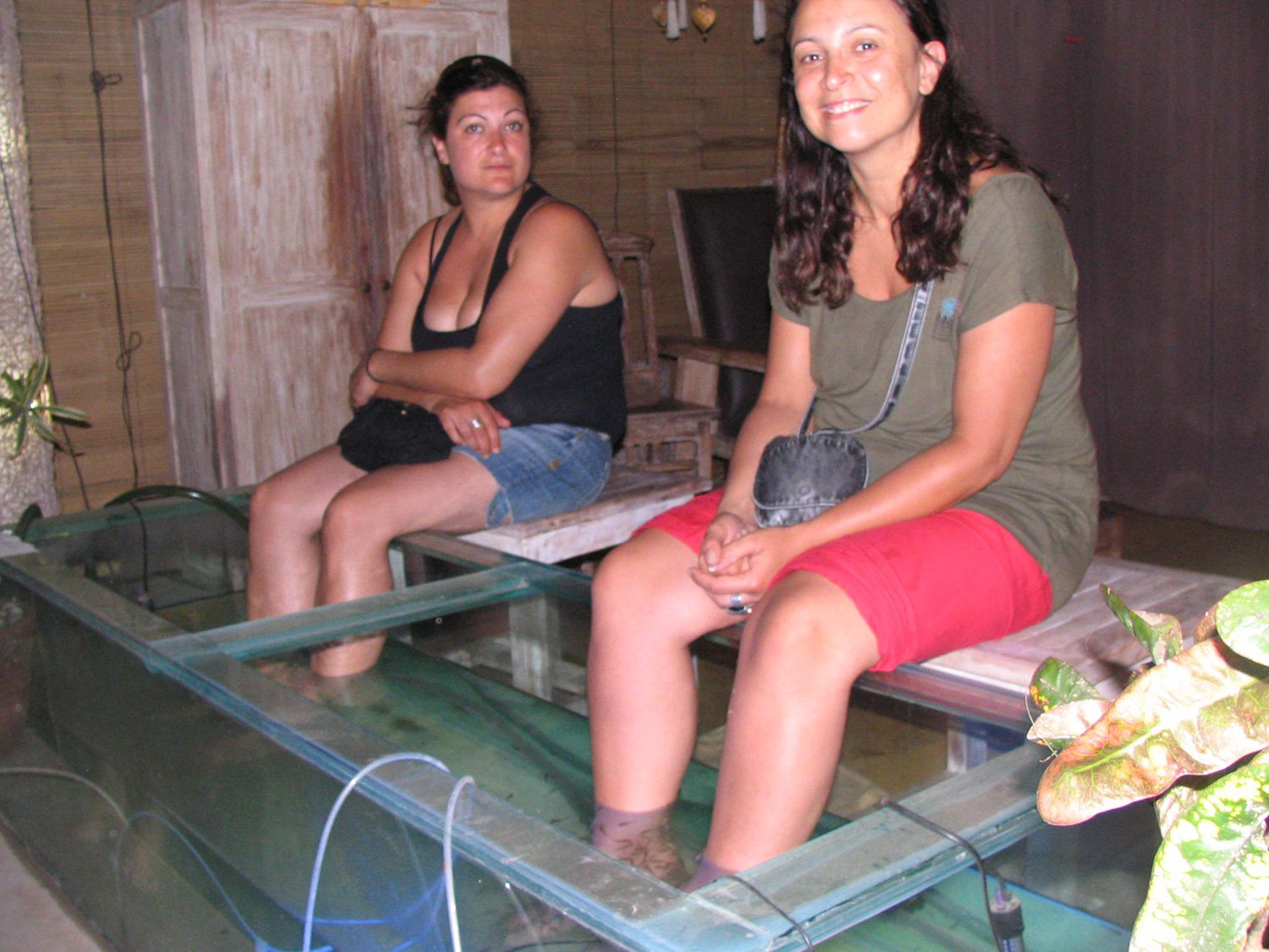 Tudo me encantava e ao mesmo tempo me levava a confirmar: só o Xis mesmo para me mostrar uma parte do mundo que sequer algum dia havia cogitado. E lá estava eu, admirando a massagem que os peixinhos faziam nos pés das turistas, que mergulhavam pés e um pedaço das pernas em tanquinhos com água e pequenos peixes famintos de sujeirinhas da pele humana. Na verdade, em muitos momentos eu não sabia se fotografava ou se ficava curtindo o vai e vem das pessoas, das crianças brincando à praia.