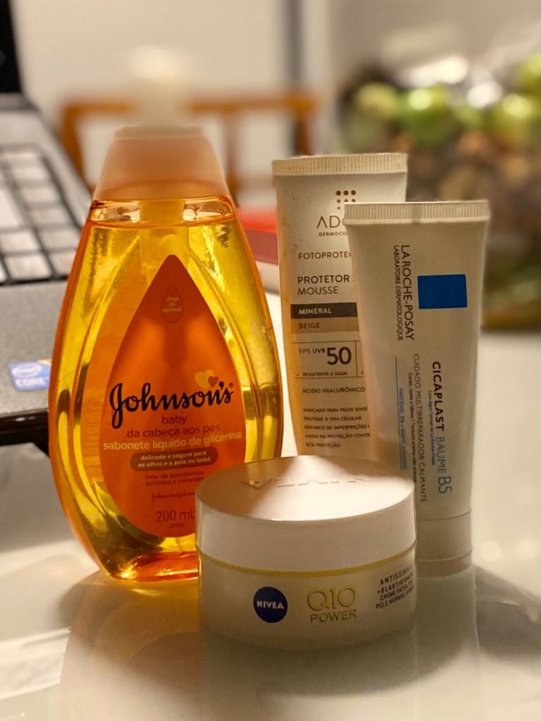 Esteticamente sou privilegiada. Nunca tive tendência de sobrepeso, sempre pratiquei esportes. Hoje tenho uma rotina um pouco mais limitada já que preciso ganhar massa, então treino aeróbico quase nenhum, muito embora em ame. Para não dizer que não faço nenhum, uma vez por semana rola uma aula de Spinning. No mais, musculação e fortalecimento pélvico, sim eu faço. Aliás, todas nós devemos fazer, já que o assoalho pélvico é um grupo muscular que sustenta vários órgãos internos, então borá lá embaixo também! Esteticamente tenho próteses mamárias que coloquei após ficar com meus peitos murchos pós-gestação. Gente é muito frustrante, você fica com peitos lindos, pelo menos no meu caso eu achei e depois de um tempo eles esvaziam igual bexiga, ah não, foi crucial voltar a ter meus peitos, então investi sim e hoje eles estão de volta. Facial, já fiz algumas aplicações de Botox, nada exagerado até porque eu não curto. Capricho na minha skincare diariamente, mas de forma muito simples – lavo o rosto com sabonete líquido de glicerina Johnsons, hidrato bem com Nívea Q10, passo protetor Adcos FPS UVB 50 durante o dia e a noite após a limpeza Cicaplast (LaRoche), dica do cirurgião plástico que deu um jeito no meu nariz após acidente de moto. Não sigo dietas, como de tudo um pouco, mas se puder evitar carne vermelha, me sinto melhor. Em compensação amo beber água, quando acordo é a primeira coisa que faço.