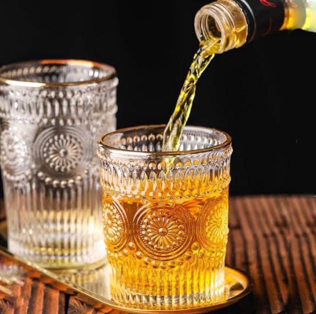 Copos de Borosilicate Vidro Retrô Vintage Borda Dourada para drinks (Shopee)