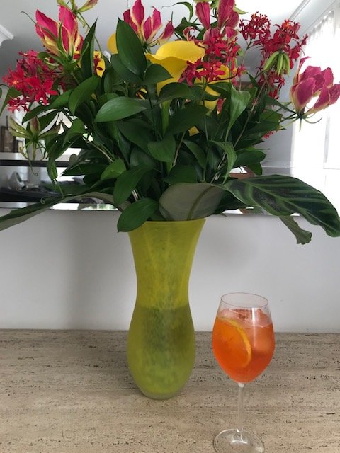E para finalizar, um brinde…Pode ser água com folhas de hortelã e limão siciliano; um Clericot refrescante ou Campari Spritz; drinks coloridos para comemorar a vida!
