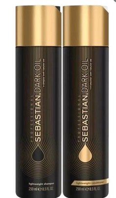 Sebastian Dark Oil, xampu e condicionador – com óleos de cedro, argan e sândalo. Hidratam e amaciam sem pesar.