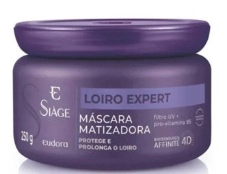 Eudora Siáge Loiro Expert Máscara Matizadora – com pigmentos violeta, para equilibrar o tom do cabelo branco, e pantenol, que ajuda a suavizar a textura.