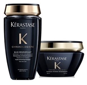 Kérastase Chronologiste, xampu e máscara – a fórmula contém ácido hialurônico, que ajuda a reter água e melhora a hidratação.