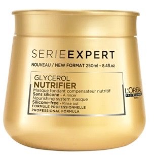 L’Oréal Professionnel Nutrifier Glycerol + Óleo de Coco Creme Nutritivo Termo Protetor (protetor térmico) – protege contra temperaturas de até 230 graus e ajuda a manter os fios nutridos e flexíveis.